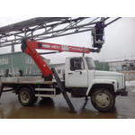 На шасси ГАЗ-3309 установлена автовышка Socage телескопическая T318. Для данной модели характерны следующие показатели: максимальная высота - 18м, максимальный вылет - 10м, максимальная грузоподъемность люльки - 250 кг. Подъемник оборудован изолированной люлькой, позволяющей оператору проводить рабо... подробнее
